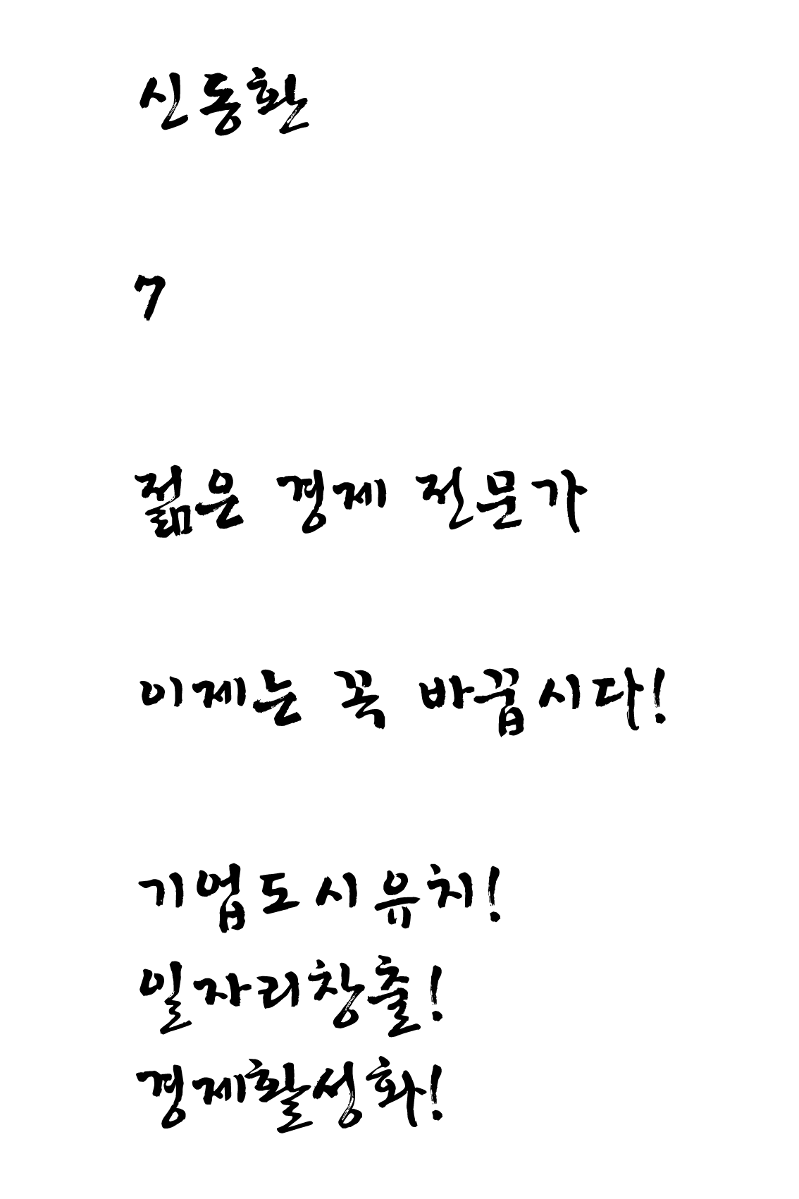 [급]아웃라인 부탁드립니다(_ _) kidcudi 일반 0 4257 2010.05.18 01:24 -0001.11.30 00:00 20100518-.ai (0byte) + 22 > > 신동환 > > 7 > > 젊은 경제 전문가 > > 이제는 꼭 바꿉시다! > > 기업도시유치! > 일자리창출! > 경제활성화! > > 너무많죠? > 위에 문구들을 유려체랑 쿨째즈체 두개로 아웃라인좀 부탁드립니당 > 조금 급해서요 ㅠ.ㅠ > 유려체밖에 없어서 유려체만 했어용